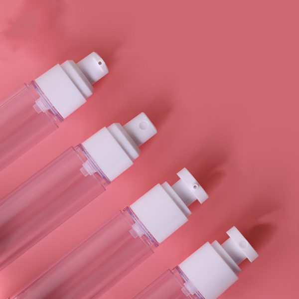 Product Details: Product Name: AS airless bottle sunscreen spray bottle Process: Injection molding Material: Airless Color: Transparent Specification: 15 30 50 80 100 (g) Place of origin: Ningbo,China Logo: Customizable Feature: Good sealing and clean. Press-type pump head, external spring pressure spray effect is meticulous, and the spring does not contact with liquid, avoiding skin…